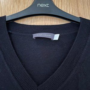 Navy Mint Velvet v neck jumper with detailed sleeves