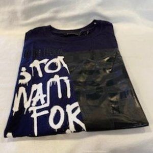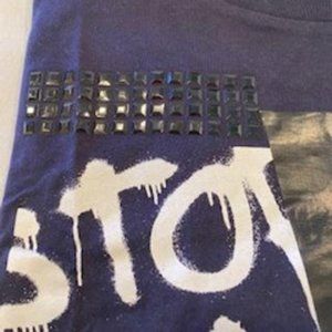 Navy Multi-Color, graffiti graphic design, black square embellishments, long sleeve, men's T-Shirt.