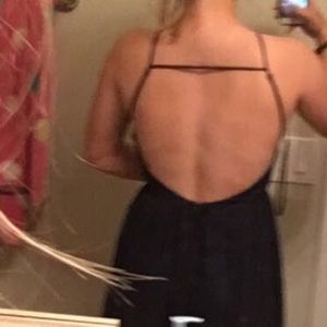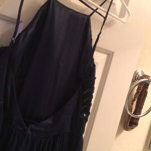 This gorgeous navy prom dress is simple and elegant! It has an open back and leg slit. You're sure to love it! Only been worn once. I am willing to negotiate the price!