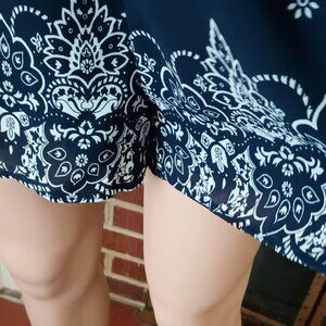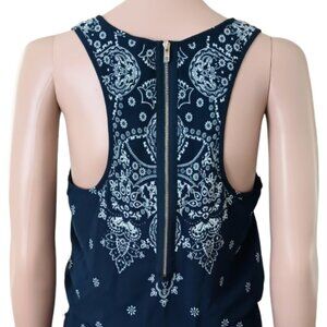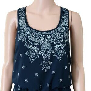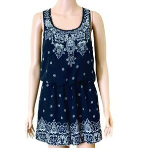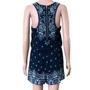 Navy Paisley Culotte Halter Jumpsuit S Short Boho Scoop Neck Exposed Back Zipper