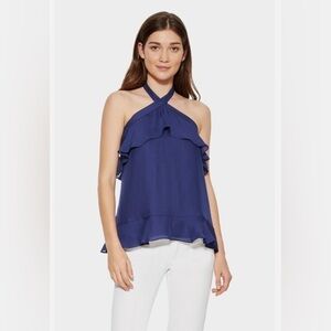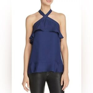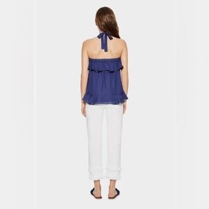 Parker 100% silk halter top. Feminine and flouncy ruffles. Perfect for date night or brunch with your girls! Versitile, wear with white jeans or vegan leather leggings. Comfortable and light weight. Worn once!