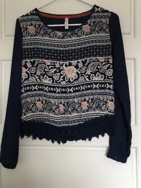 Navy Patterned Top