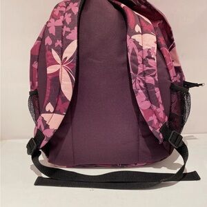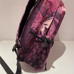 Item: Navy, Pink Flowers Backpack with small pocket and two mesh pockets in side