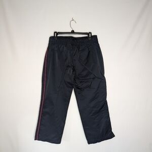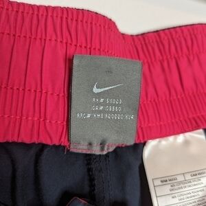 Great workout pants by Nike. Navy with Pink accent stripe on both sides. Size Large. Flaw on right front leg. Price adjusted.