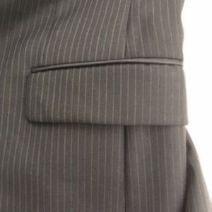 100% Wool Navy with alternating Dark Gray and Gray-Blue pinstripes