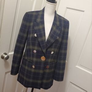 Navy Plaid Fully Lined Career Blazer Medium NavyGreen Classic
