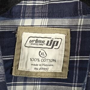 Navy Plaid Pearl Snap Shirt Mens XL Short Sleeve Western Style 100% Cotton