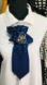 Stylish navy tie with polka dots and a decorative purse brooch. Perfect for formal occasions.