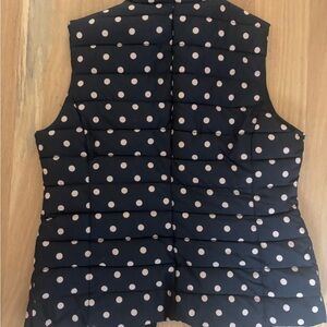 Elevate your style with this navy polka dot quilted vest. Perfect for layering, it adds a touch of elegance to any outfit.