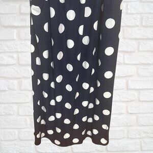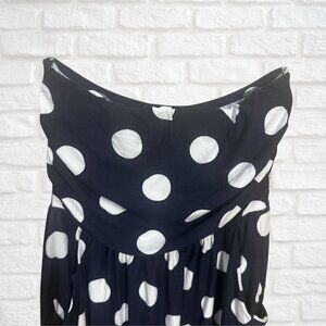 polka dot maxi dress, plus size summer dress, navy and white dots, strapless maxi, pocket dress, vintage style dress, cottagecore, retro print, vacation outfit, stretchy sundress