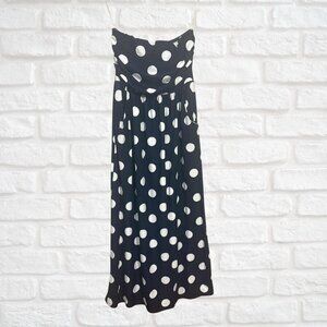 Navy Polka Dot Strapless Maxi Dress w/ Pockets 1X Vintage Style Plus Size Cozy