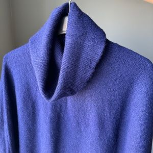 Solid navy colored pullover poncho sweater with oversized turtleneck collar. In excellent pre-owned condition. No stains, holes, rips or odor.