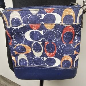 Navy Red Coach Signature Legacy Crossbody Vacation Purse Travel Resort Preppy