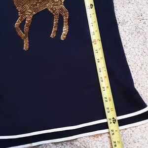 Navy Red & White Lightweight Holiday Sweater Gold Sequined Reindeer Sz XS