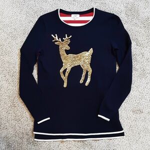 Crown & Ivy lightweight sweater with a large gold sequined reindeer - Sz XS