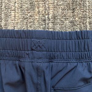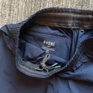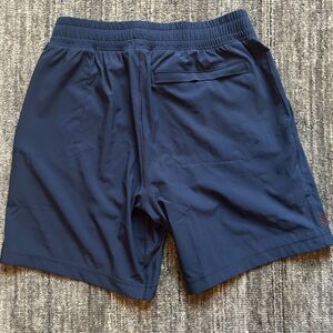 Navy Rhone Men's Athletic Shorts, size small. Pre-owned, excellent condition. 7 in inseam, unlined, elastic waist, drawstring, pockets