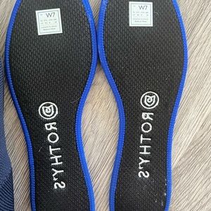 Navy Rothy’s size 7. Worn 3-4 times. Never washed. Purchased from Rothy’s website. No flaws just too small for me and I missed the return window.