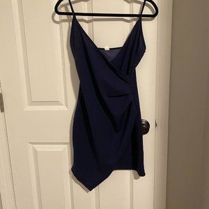 Navy Ruched Side Asymmetrical V Neck Bodycon Cami Dress - Size Medium