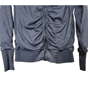 This is meant to be a reversible jacket however the black side has a small tear in the arm (see last pic). Could easily be repaired or worn on just the gray side. Otherwise jacket in excellent condition with replacement hair tie still in place.