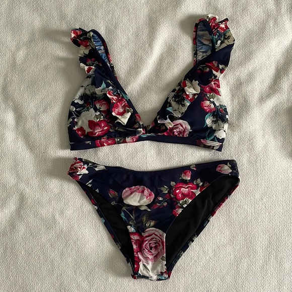 Fun and flirty! Top is low cut, bottoms are ruched making them very flattering and comfortable.