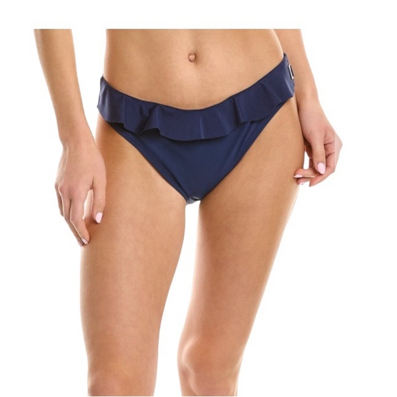 Stylish navy bikini bottom with ruffle detail. Perfect for beach days.