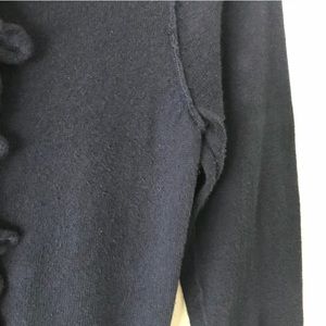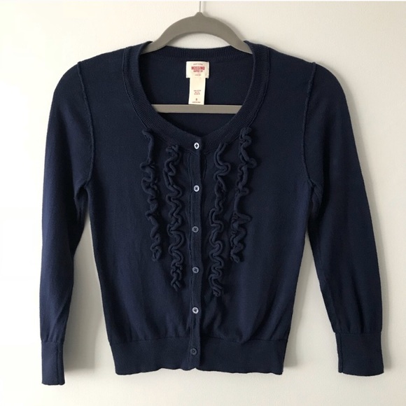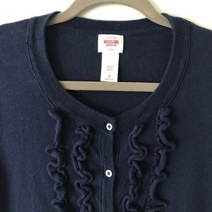 This classic navy cardigan gets a playful twist from ruffling on the front.