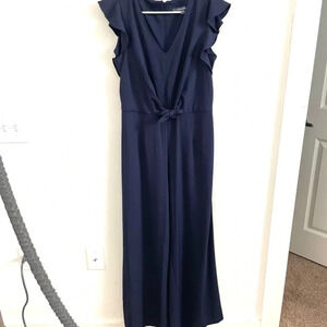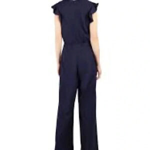 Navy Ruffle Sleeve Jumpsuit Tie Waist Wide Leg Elegant Workwear Evening Cocktail