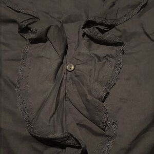 Navy Ruffled Button-Up Blouse