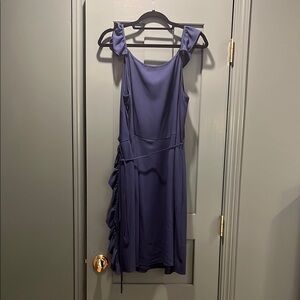 This stunning sundress features a captivating asymmetrical design and elegant ruffles cascading down the side. The rich purple hue adds a touch of sophistication, making it perfect for a cocktail party or a night out. The cap sleeves and flowing silhouette create a flattering and stylish look.