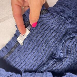 Stylish blue skirt with built in shorts with textured fabric. Ideal for everyday wear.