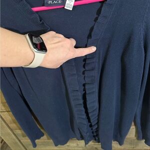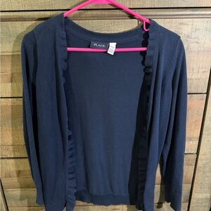 Navy Ruffled Open Cardigan