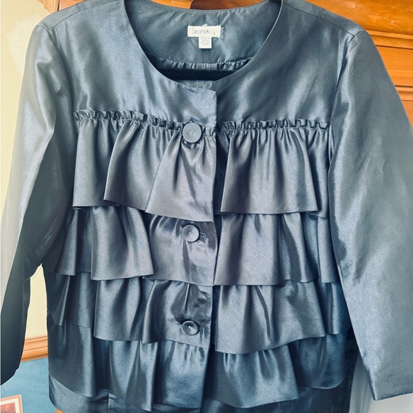 Elevate your style with the Black Ruffled Women's Jacket. This elegant piece features a chic ruffled design, perfect for any occasion.