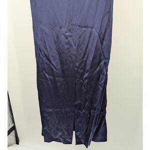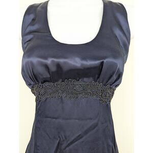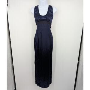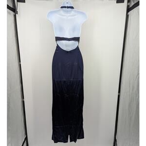 Navy Satin Beaded Halter Evening Gown Open Back Formal Maxi Dress Size 6