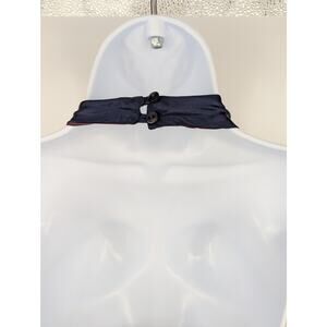 A stunning vintage Jessica McClintock Gunne Sax navy evening gown made in the USA. This full-length halter dress features a scoop neckline, an open back with button closures at the neck and mid-back, and intricate black beaded embroidery at the empire waist. The smooth satin finish gives it a timeless formal look perfect for proms, galas, or elegant evening events. Fully lined, back zipper closure. Size 9/10 (see measurements below). Ships in box to preserve condition.