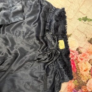 Stylish black satin trouser pants with a drawstring waist. Perfect for casual or dressy occasions if you’re going for that pajama chic style