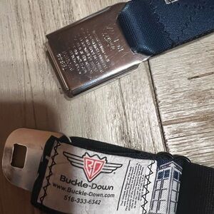 Stylish navy seatbelt belt with a unique design. Perfect for adding a touch of flair to any outfit. Ajustable longest length is 45 inches great condition