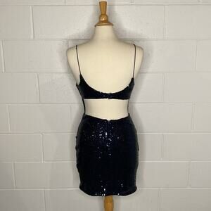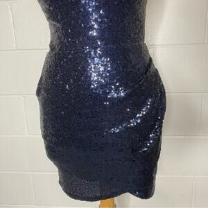 Navy Sequins Deep V Neck Open Back Formal Mini Dress P
