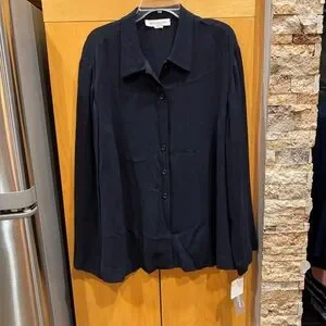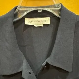Stylish dark blue shirt-jacket with a classic collar and button front.