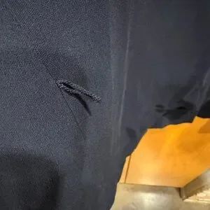 Tag at neck has been cut out so not sure of exact fabric but it’s a substantial woven material.