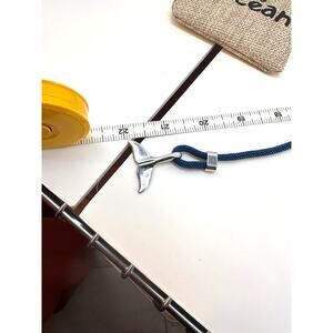 ~Navy blue wrap rope bracelet with silver dolphin tail pendent/closure