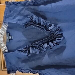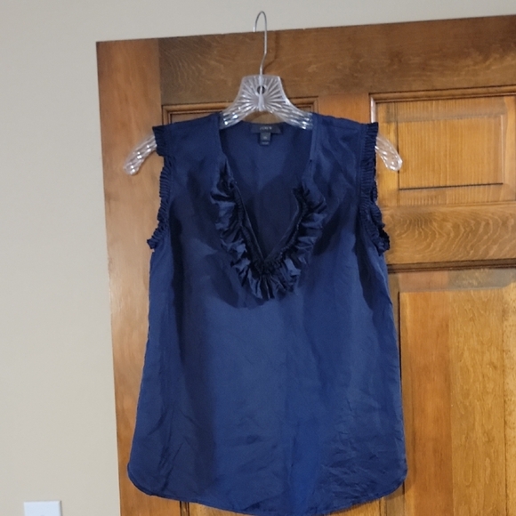 Elegant navy sleeveless top with ruffle detailing. Perfect for any occasion. No flaws