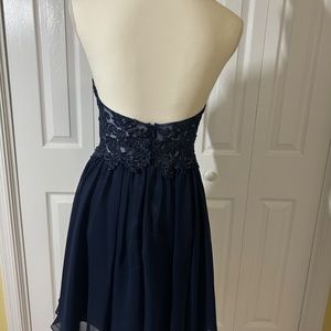 Navy blue backless special occasion dress. Perfect for Prom, Homecoming or that special event.
