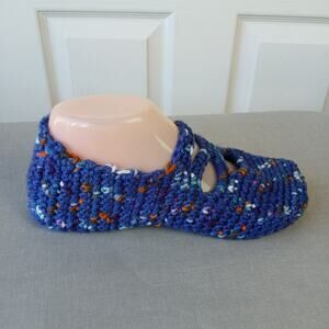 Navy Speckle Ballet Style Crochet Slippers sz 7 square toe premade Posh Hooking
