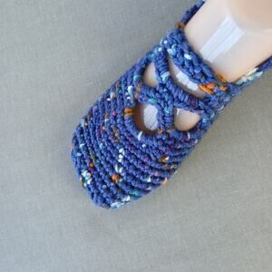 Navy Speckle Ballet Style Crochet Slippers sz 7 square toe premade Posh Hooking