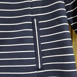 Navy Striped Dress Open Back Boat Neck Ponte Size 12P Coastal Nautical Preppy
