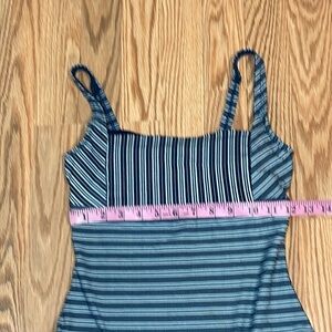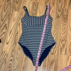 Navy Striped One Piece Swimsuit, XS S