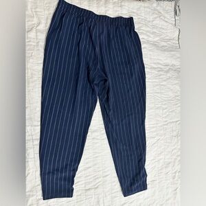 Stylish navy striped pants perfect for any occasion. Comfortable fit with a sleek design.