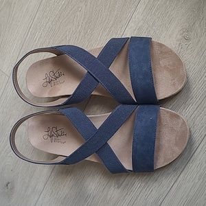 LifeStride Flex navy suede wedges in style Mexico. Heel measures approx 2 inches. The shoes are very comfortable, and in size 9W (wide).