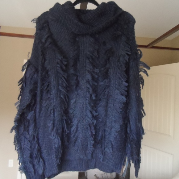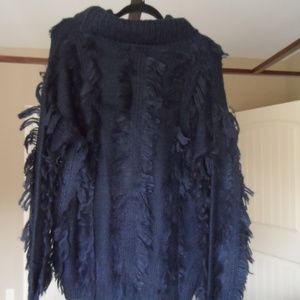 NWT Navy cowl neck sweater with fun fringe detail throughout. Size is L/XL so would fit both sizes, just more over-sized on large and more fitted on XL.