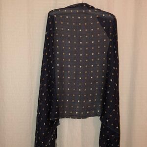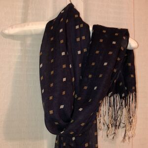 Navy Tan Ivory Lightweight Tasseled Large Scarf Wrap